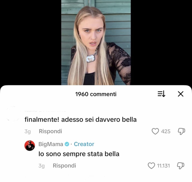 Nei pochi secondi del video è evidente un cambiamento fisico. BigMama appare dimagrita, un dettaglio che non è passato inosservato a diversi utenti. In particolare, un commento ha attirato la sua attenzione:
