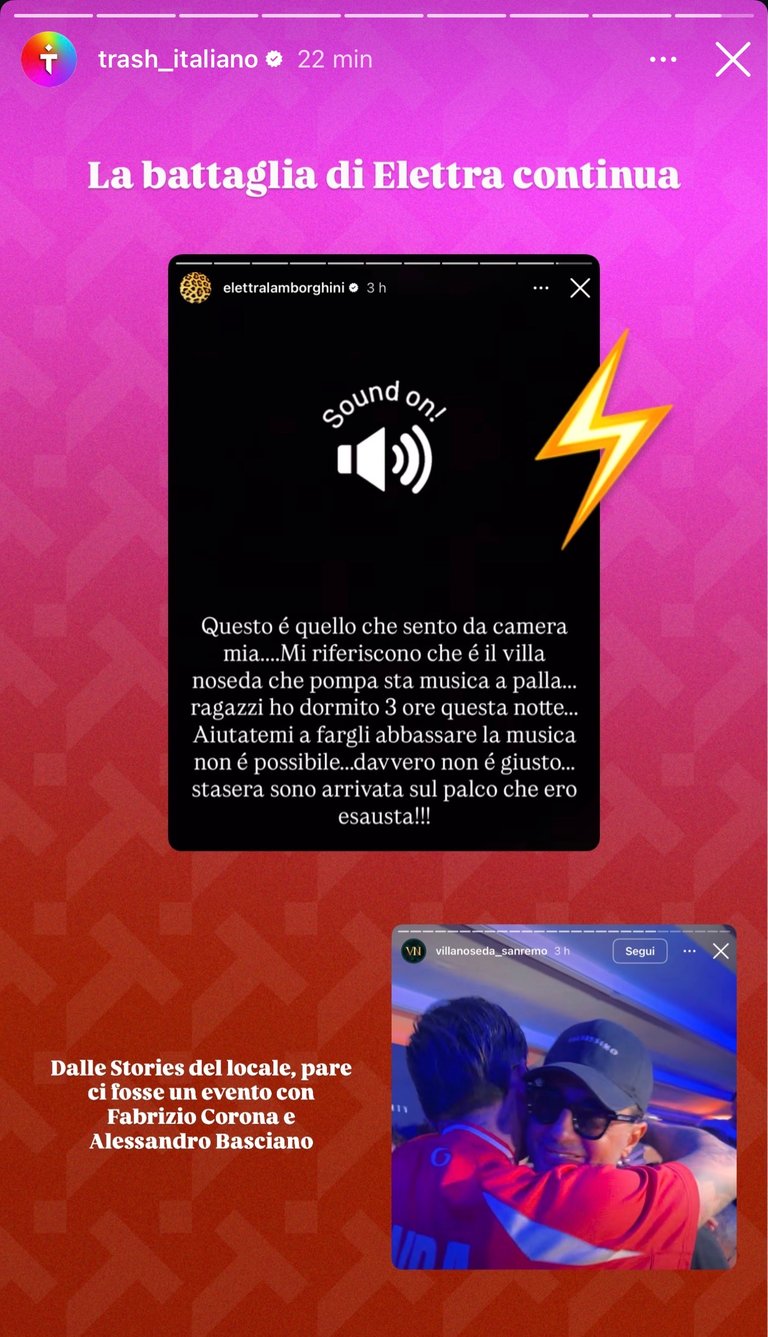 Immagina di salire sul palco dell’Ariston al Festival di Sanremo dopo aver dormito appena due ore e, subito dopo l’esibizione, protestare per la musica troppo alta che durante la notte non ti ha dato pace. È quanto accaduto a Elettra Lamborghini che, dopo aver cantato “Voilà”, ha raccontato la sua notte in bianco.