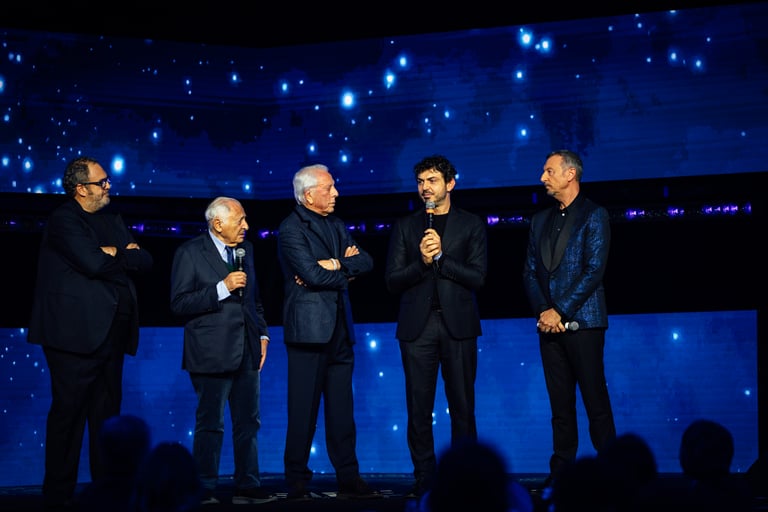 Amadeus, ancora una volta padrone di casa, ha aperto lo show chiamando sul palco il Presidente SIAE Salvatore Nastasi, Mogol, Mario Lavezzi e l’Assessore alla Cultura di Milano Tommaso Sacchi. Ognuno di loro ha condiviso un ricordo personale, restituendo al pubblico l’immagine di un’artista immensa, fragile, ironica e capace di lasciare un segno indelebile in chiunque l’abbia incrociata.